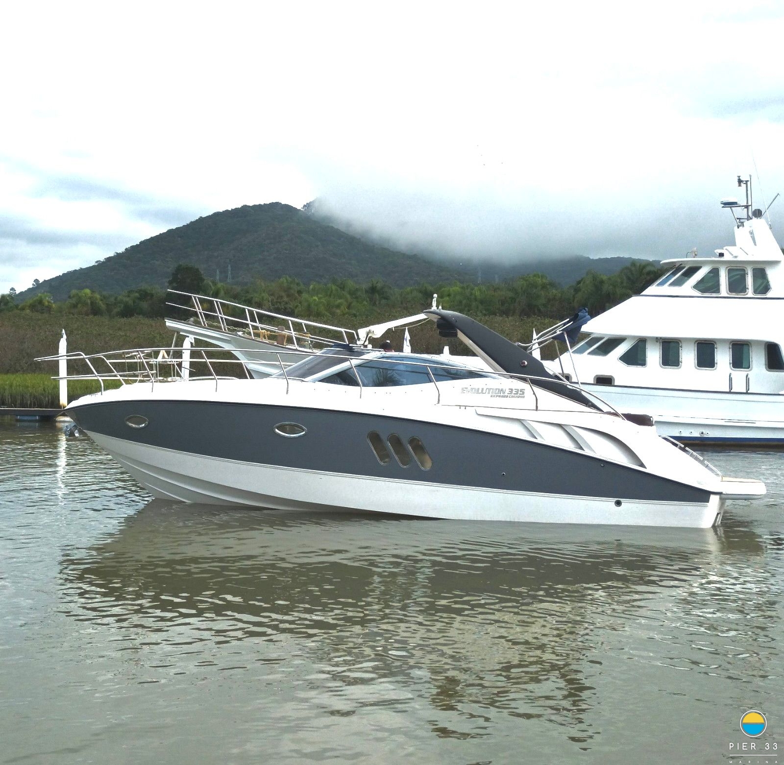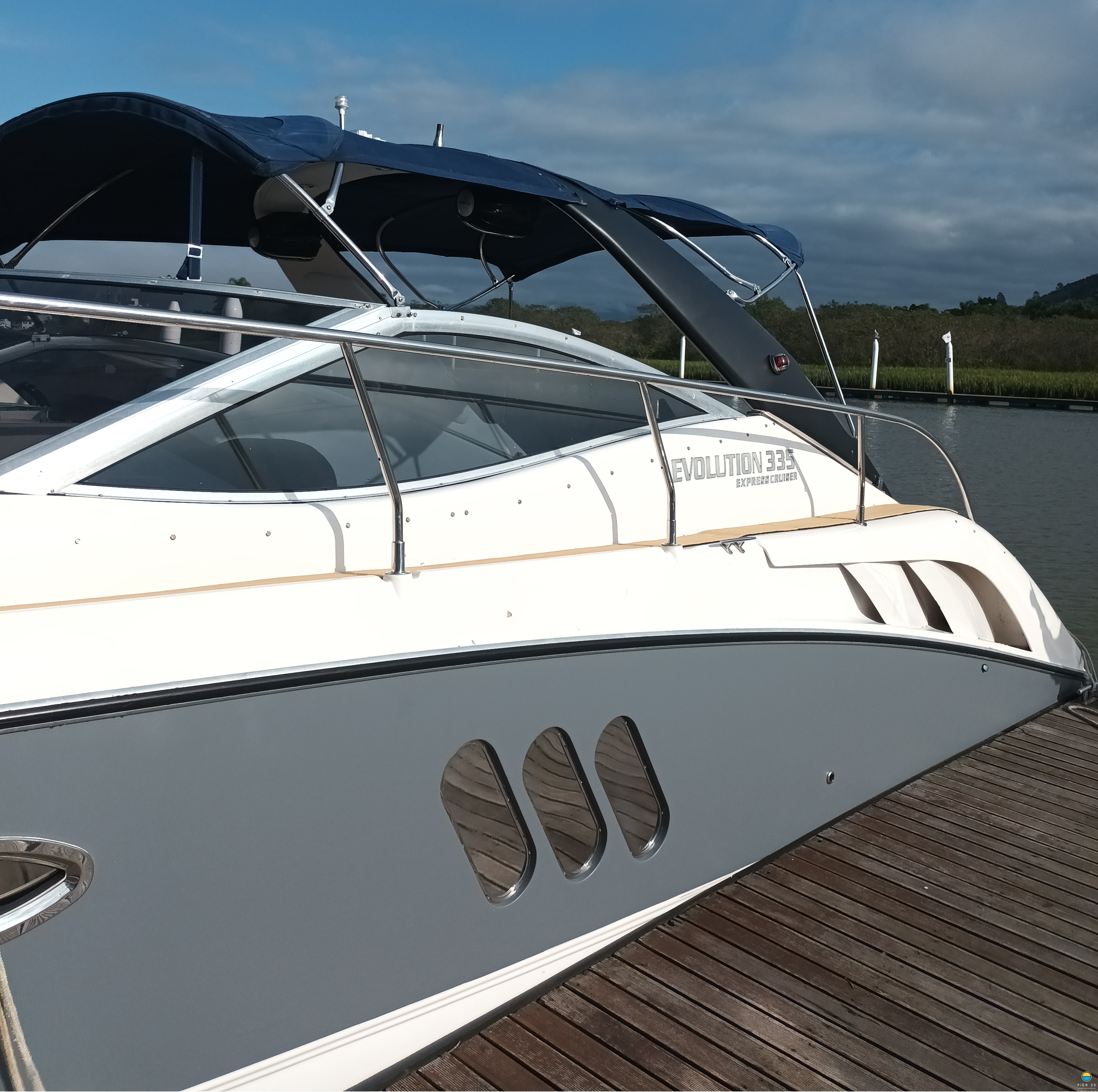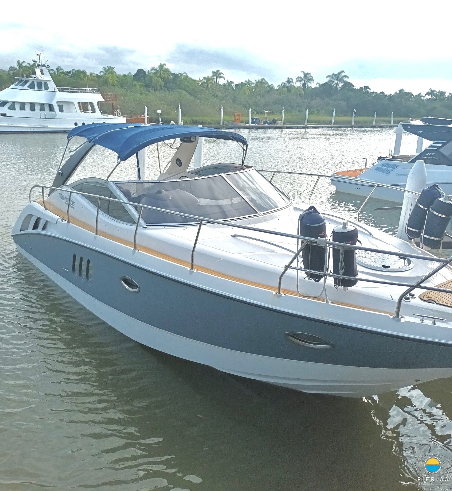 Espaço Gourmet com Churrasqueira a Carvão, Teca EVA, GPS, VHF, Guincho Elétrico, Solarium de Proa, Carreta, Capa, Som