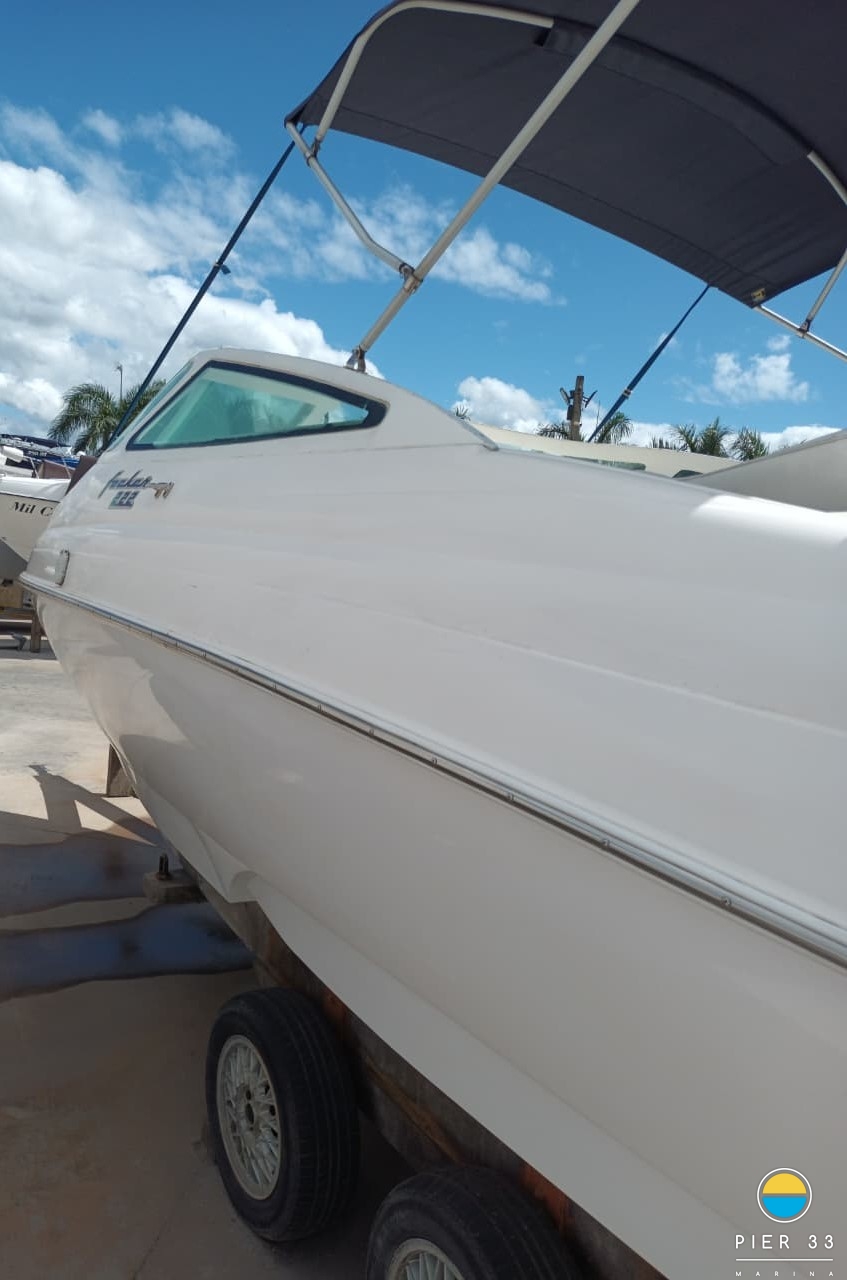 Carreta Capa Suporte bote Guincho elétrico Teka EVA Plataforma Churrasqueira carvão Som Tapete cock pit Solário proa Bar Fogão a gás Geladeira externa Toldo stolbag elétrico VHF Ventiladores internos Fechamento total