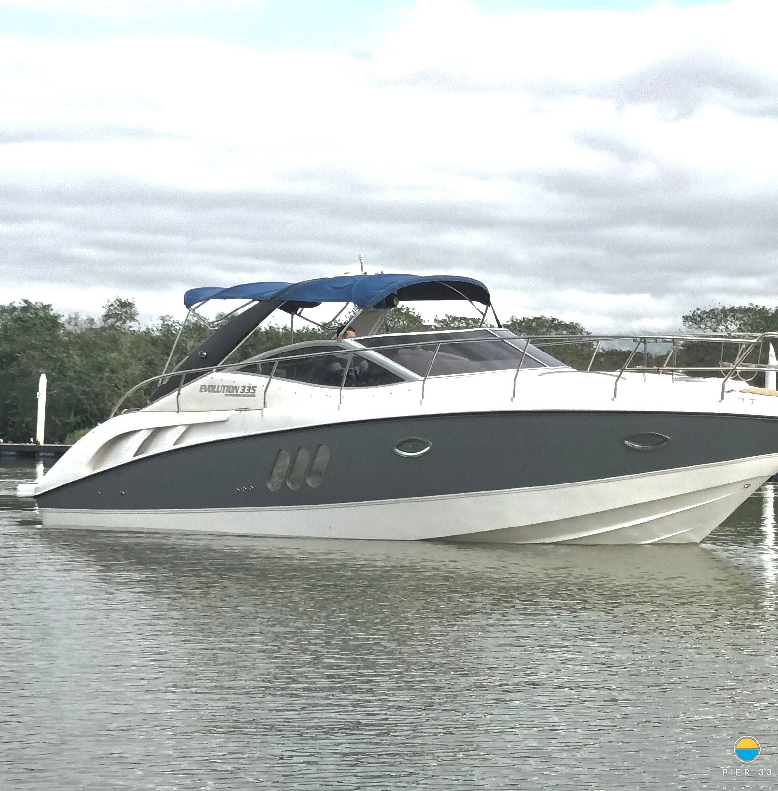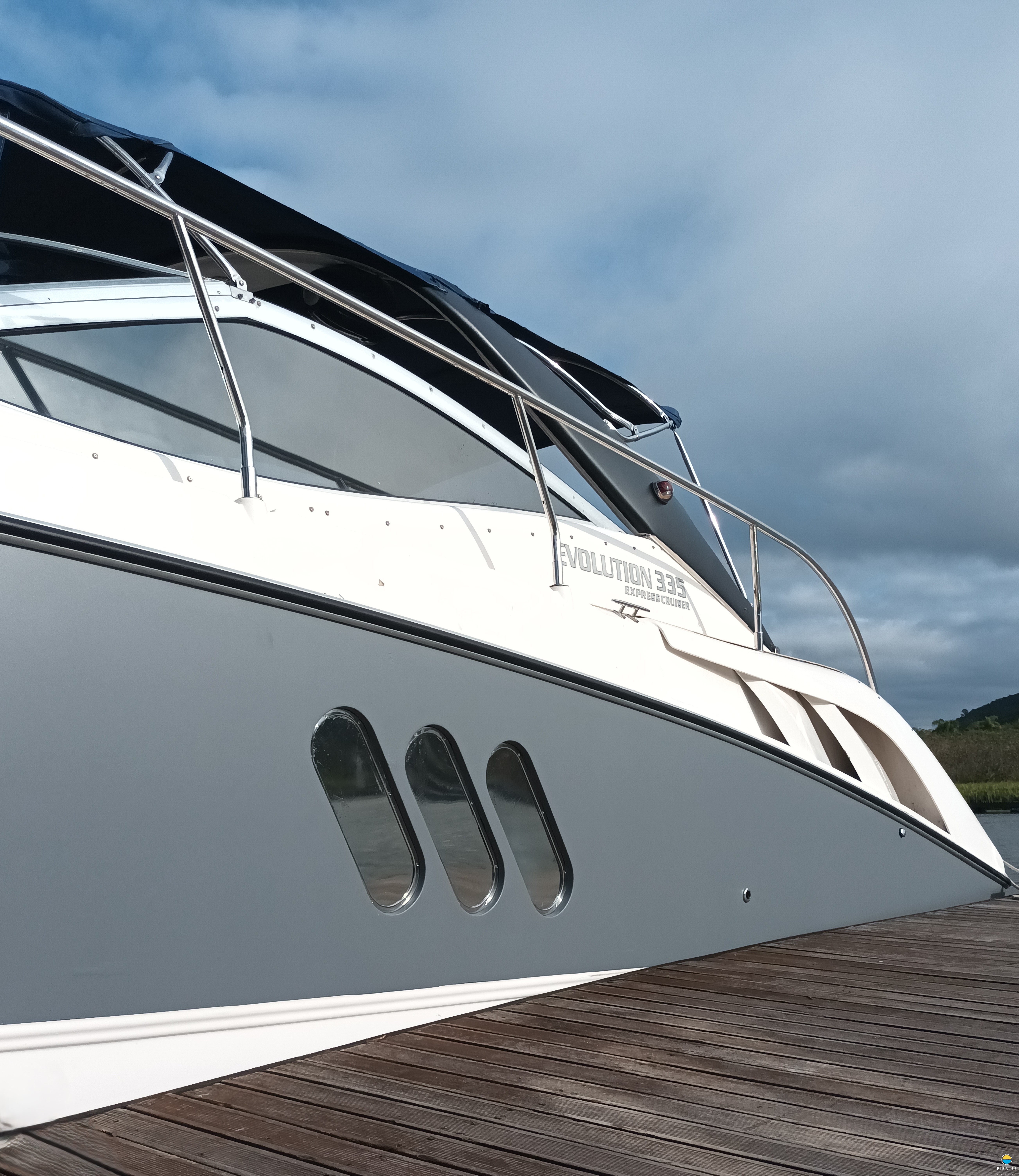 Espaço Gourmet com Churrasqueira a Carvão, Teca EVA, GPS, VHF, Guincho Elétrico, Solarium de Proa, Carreta, Capa, Som