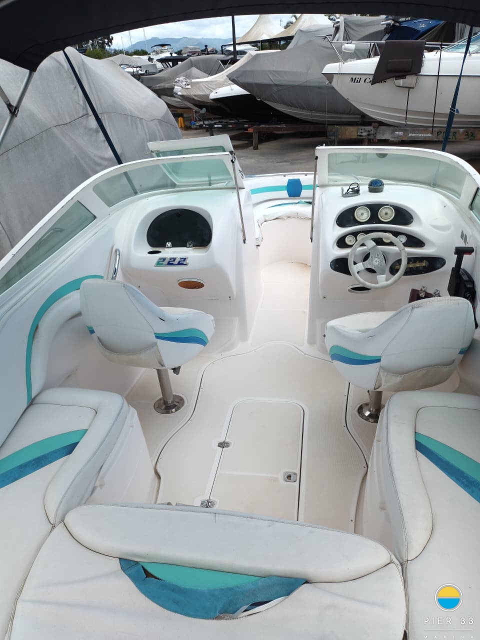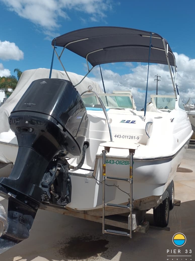 Carreta Capa Suporte bote Guincho elétrico Teka EVA Plataforma Churrasqueira carvão Som Tapete cock pit Solário proa Bar Fogão a gás Geladeira externa Toldo stolbag elétrico VHF Ventiladores internos Fechamento total