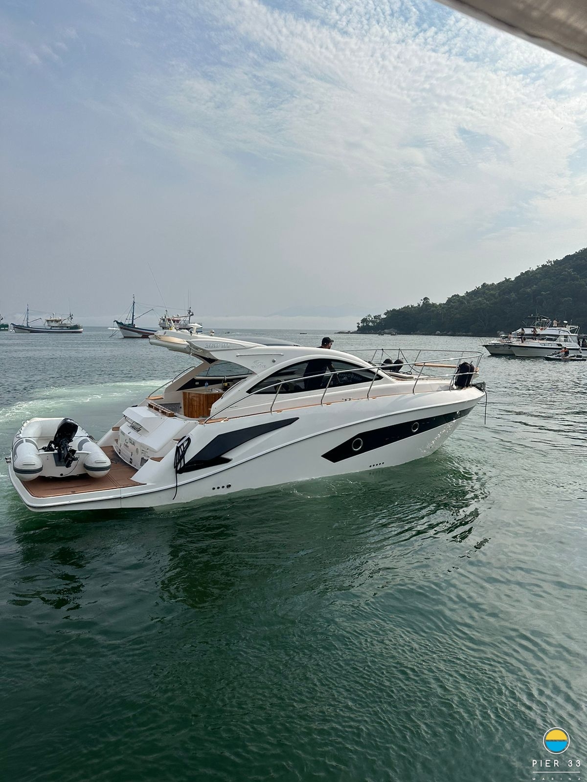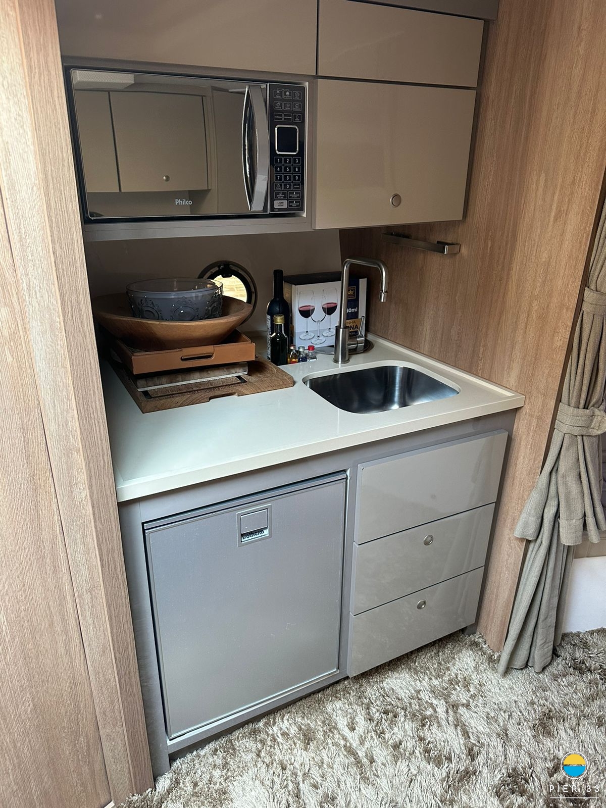 Ar condicionado -Gerador -Tv - Geladeira - Fogao - Micro ondas - Boiler - Gps - Vhf - Som - Toldo com fechamento total - Solarium - Guincho - Flap - Luz sub aquatica - Eva em todo o barco - Churrasqueira
