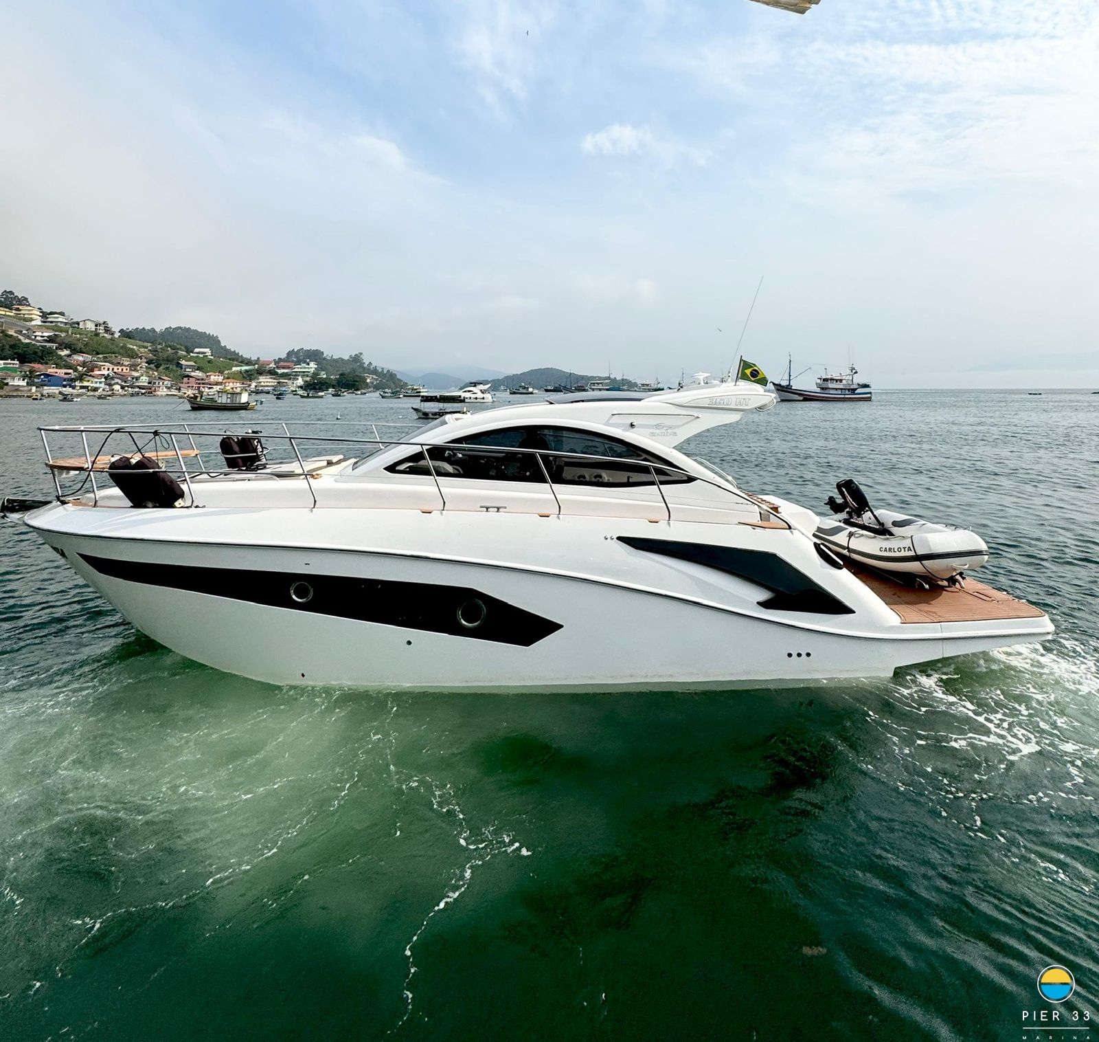 Espaço Gourmet com Churrasqueira a Carvão, Teca EVA, GPS, VHF, Guincho Elétrico, Solarium de Proa, Carreta, Capa, Som